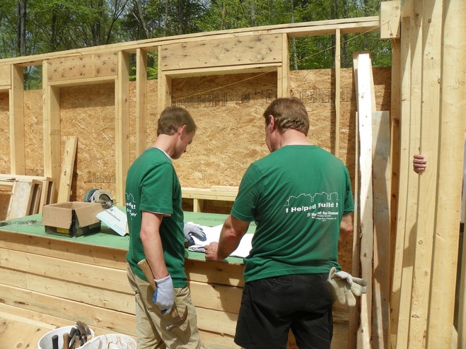Submitted by Spencer Financial, LLC on May 15th, 2014Spencer Financial, LLC closed its doors for the day on May 15, 2014, to participate in a day long Habitat for Humanity build in nearby Wayland, Massachusetts. They were joined by a group of hearty clients who were all participating in their first Habitat project. The finished project will house 4 deserving families who are required to contribute 400 hours of sweat equity and go through a lengthy approval process. The Spencer Financial advisors, staff and clients left the site with bruises, aches and some well earned satisfaction for having given back to their community.