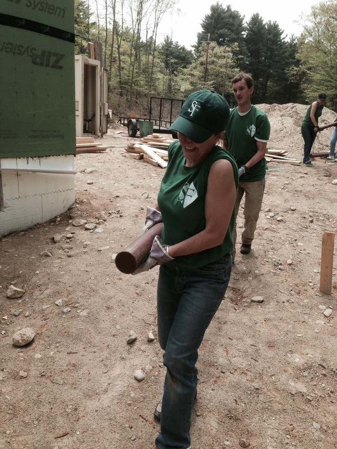 Submitted by Spencer Financial, LLC on May 15th, 2014Spencer Financial, LLC closed its doors for the day on May 15, 2014, to participate in a day long Habitat for Humanity build in nearby Wayland, Massachusetts. They were joined by a group of hearty clients who were all participating in their first Habitat project. The finished project will house 4 deserving families who are required to contribute 400 hours of sweat equity and go through a lengthy approval process. The Spencer Financial advisors, staff and clients left the site with bruises, aches and some well earned satisfaction for having given back to their community.